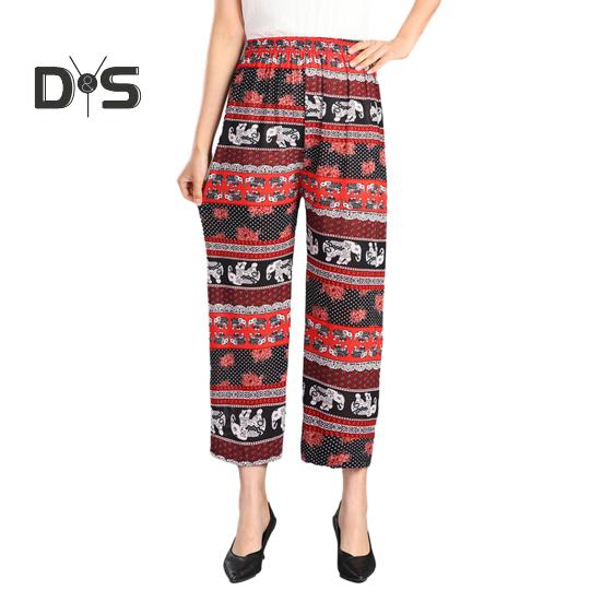 Женские брюки с принтом слона, удобные широкие брюки с эластичной талией, брюки-палаццо для летнего пляжного отдыха красный