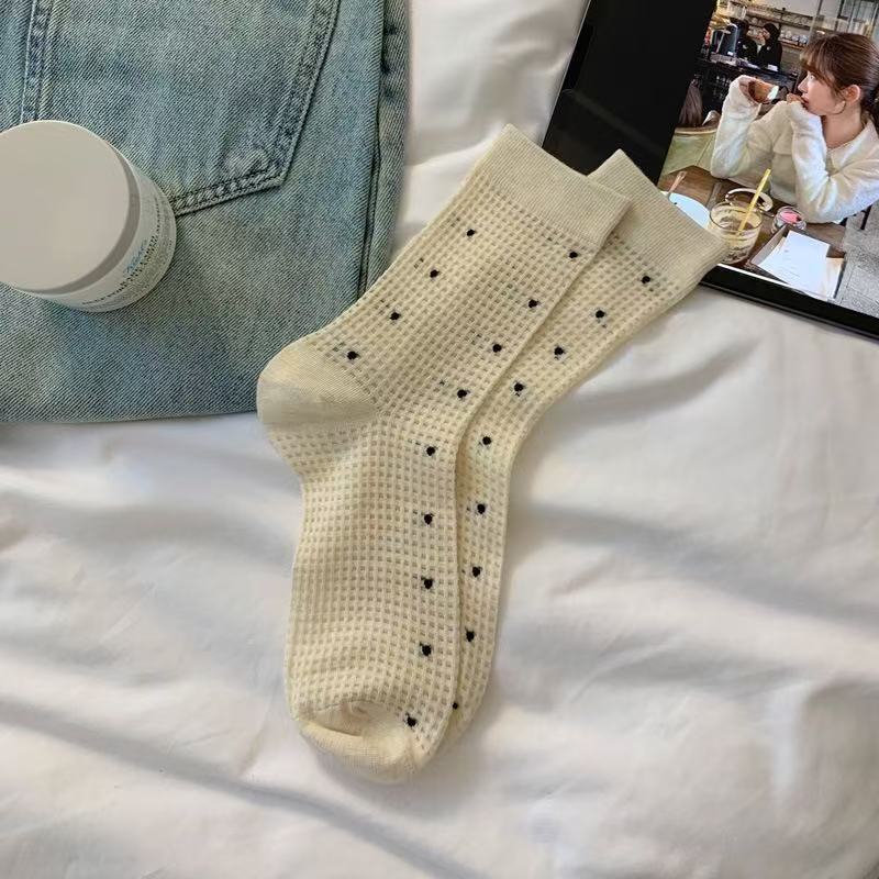 Женские весенне-летние тонкие сетчатые носки-гольфы в горошек из хлопка 1 pair молочный белый