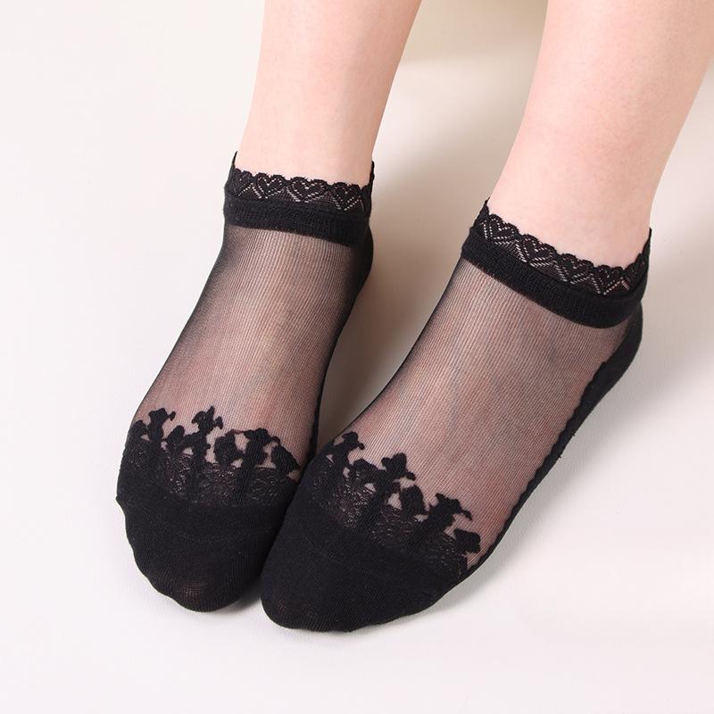 Женские весенне-летние чулки нового стиля, тонкие, с кружевом Любовь , из стеклянного шелка, модные, с кристаллами 1 pair чёрный