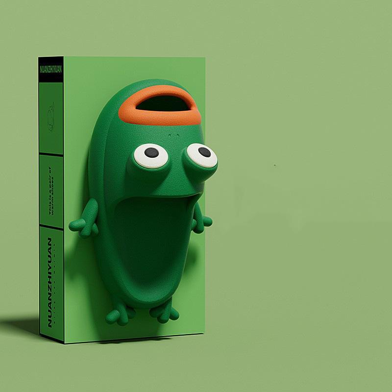 Женские весенние тапочки большого размера с плоской подошвой для дома, летние повседневные тапочки с рисунком лягушки-монстра, нескользящие уличные тапочки 36-45 36-37 зелёный