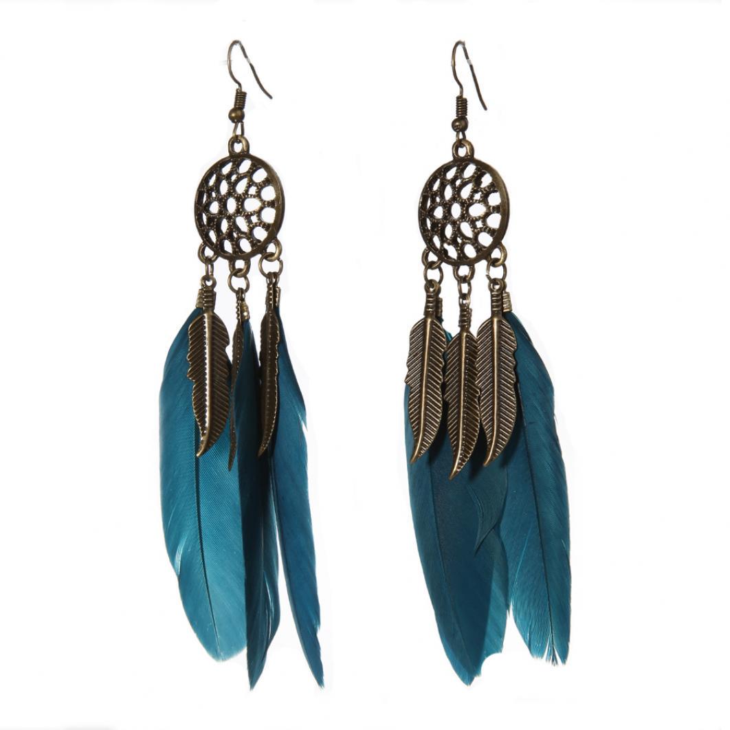 Женские винтажные серьги-подвески в стиле бохо с перьями и листьями, ювелирное украшение в подарок ARI синий