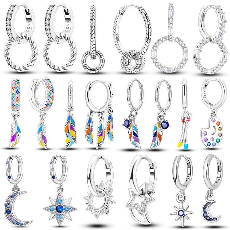 Женские висячие серьги из стерлингового серебра 925 пробы, Солнце, Луна и звездное перо, модные серьги-кольца, ювелирные изделия, подарок для девочек