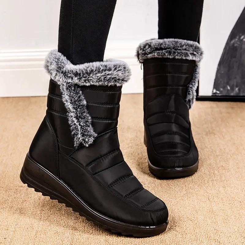 Женские водонепроницаемые зимние ботинки, толстые плюшевые зимние ботинки, женские ботинки на платформе по щиколотку, теплые ботинки с хлопковой подкладкой и мехом кролика 36 чёрный