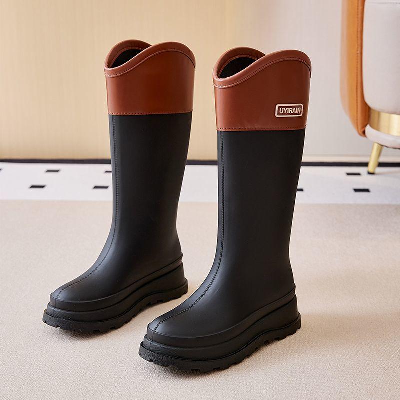 Женские водонепроницаемые резиновые сапоги до колена для сильной непогоды, нескользящая толстая подошва, рабочая и кухонная водонепроницаемая обувь большого размера 37