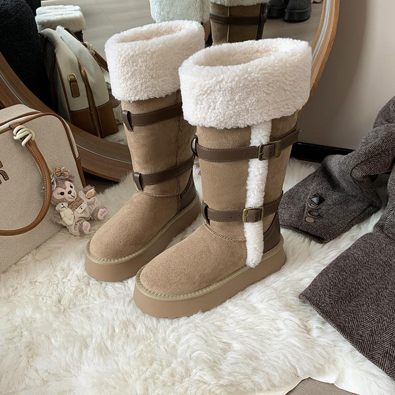 Женские высокие ботинки с модной пряжкой на ремне, легкие, с мягкой подошвой, зимние, теплые, на меху, одна пара, зимние ботинки, на подкладке, нескользящие, повседневные, спортивные, хлопковые ботинки 40