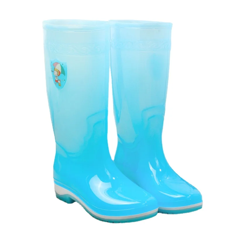 Женские высокие рабочие ботинки, прозрачная водонепроницаемая обувь, женская новая Корейская Милая резиновая обувь с нескользящей плюшево...