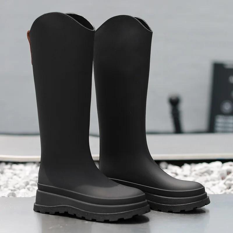Женские высокие резиновые сапоги в корейском стиле, стройнящие, модные, универсальные, нескользящие, водонепроницаемые, износостойкие, на толстой подошве, длинные сапоги 41 чёрный