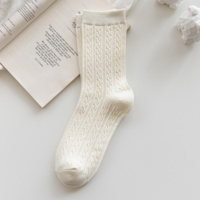 Женские вязаные вязаные вязаные хлопковые носки до середины икры, модные, универсальные, в стиле ретро, универсальные и теплые махровые носки 1 pair бежевый