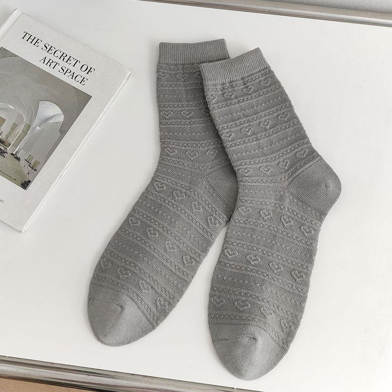 Женские гольфы до середины икры, махровые носки, милые носки, модные осенью и зимой, с темным узором, в форме сердца, ретро гольфы 1 pair