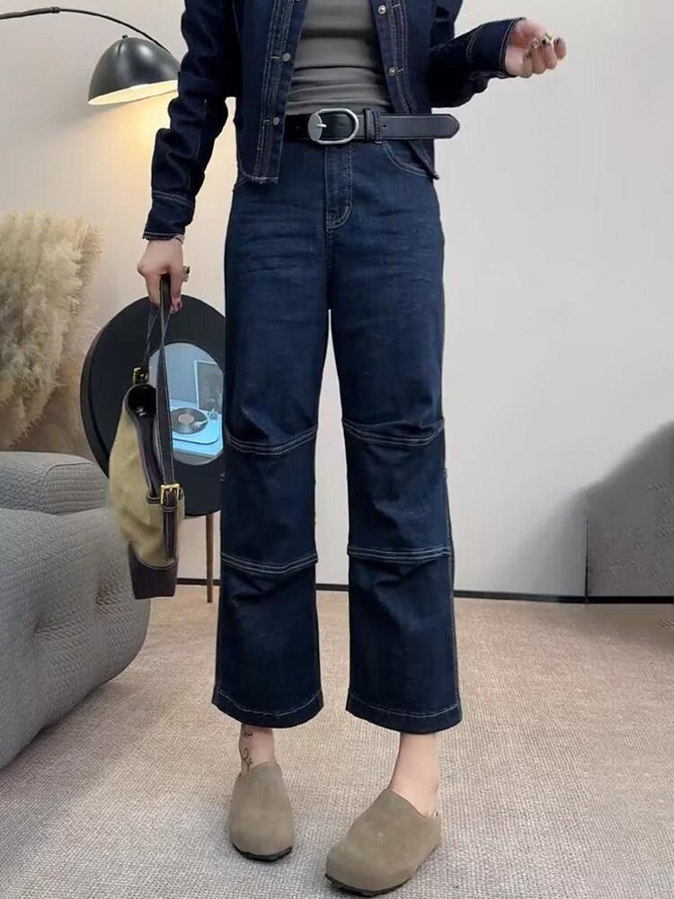 Женские джинсы большого размера с прямыми штанинами: Осень/Зима 2024 Свободные узкие брюки с широкими штанинами 2XL темно-синий