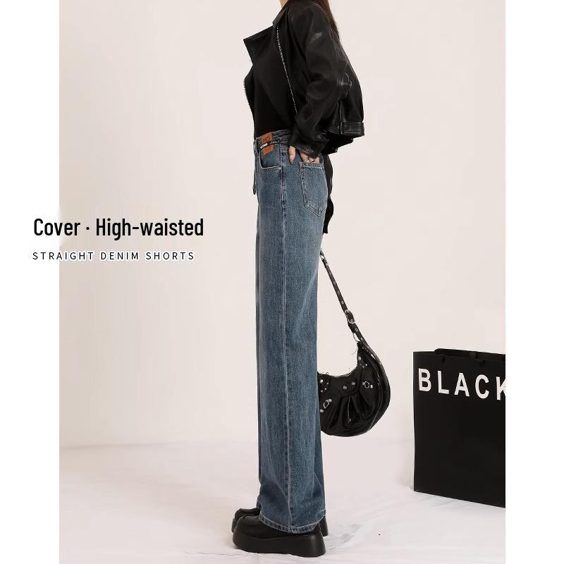 Женские джинсы с высокой посадкой на флисовой подкладке - Утягивающие, Широкие брючины, Узкие брючины, Прямые брючины, Коллекция Осень/Зима 2024 27, 98-107 lbs