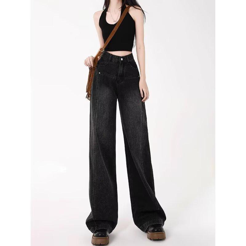 Женские джинсы с высокой посадкой, черные, серые, с широкими штанинами – больших размеров, осенне-зимний стиль, для фигуры типа «груша», стройнящие, свободные брюки прямого кроя M