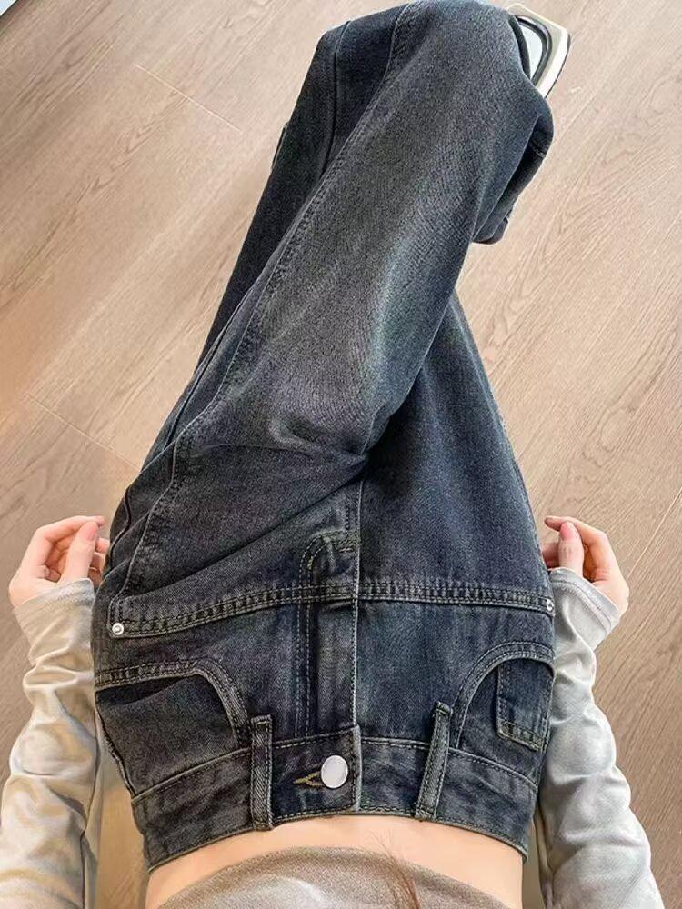 Женские джинсы с высокой посадкой и широкими штанинами, весна 2024: Свободные брюки прямого кроя для миниатюрных на весну и осень L серый