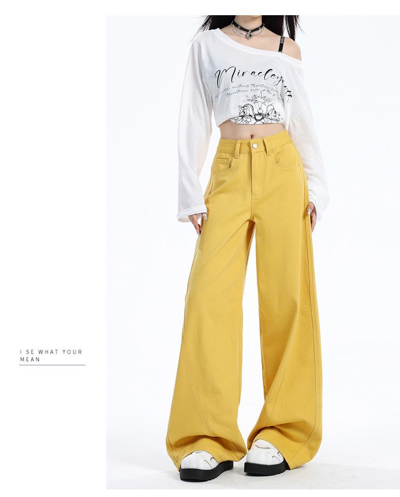 Женские джинсы с высокой талией, широкими штанинами и эффектом похудения - Коллекция Весна/Лето 2024 - Свободные брюки в пол, универсальные прямые штанины Small