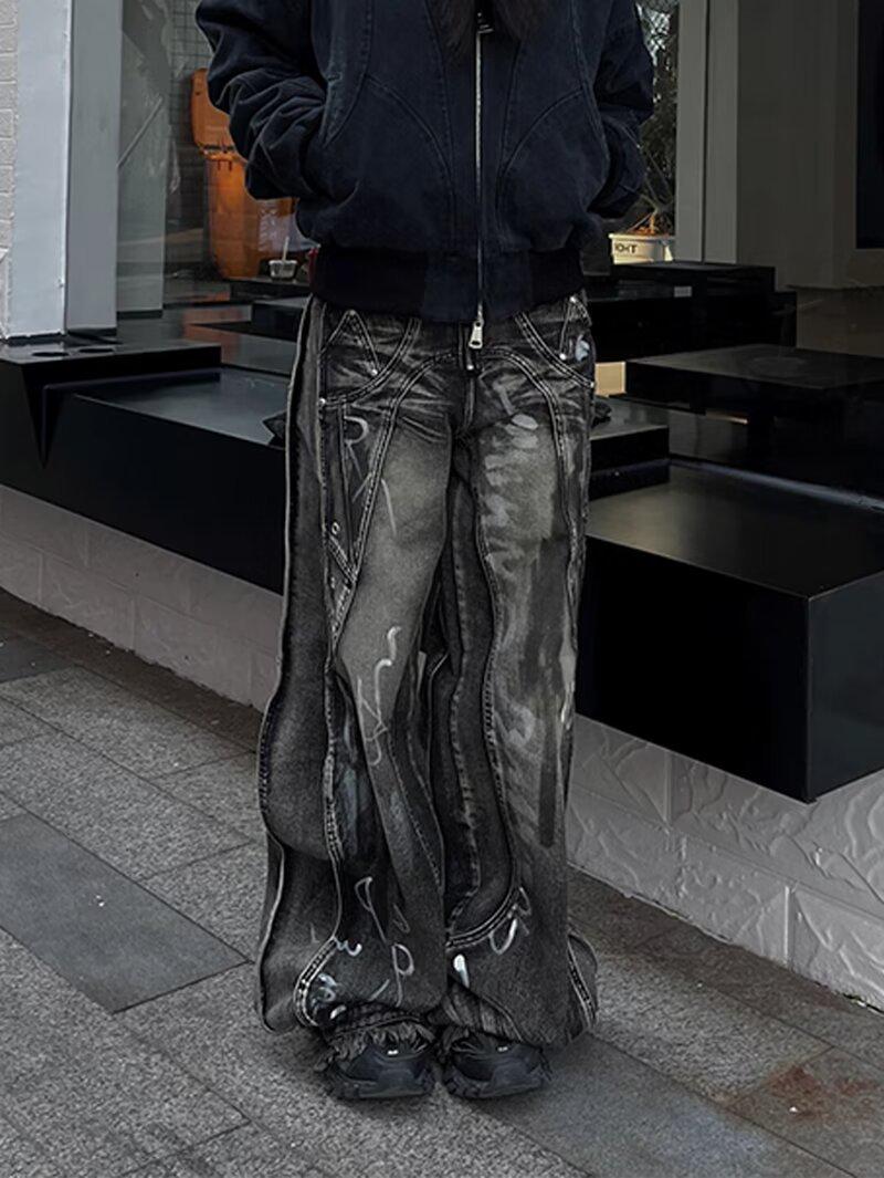 Женские джинсы с широкими штанинами в стиле американского ретро-граффити Small черный серый