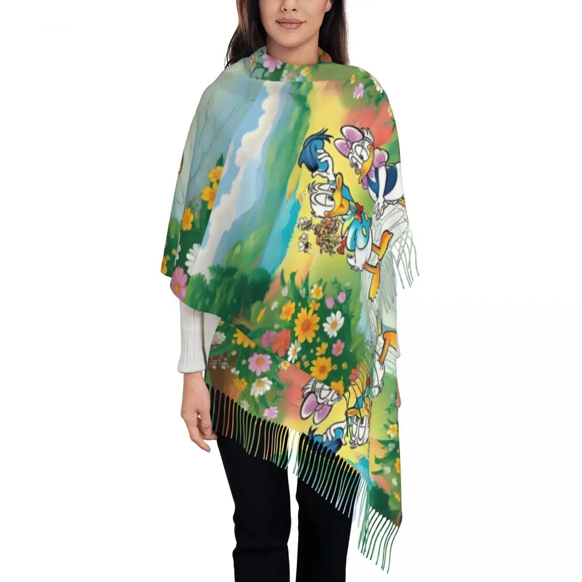 Женские длинные шарфы в стиле аниме «Дональд Дак», женские зимние мягкие теплые шаль с кисточками, милый шарф с героями мультфильмов
