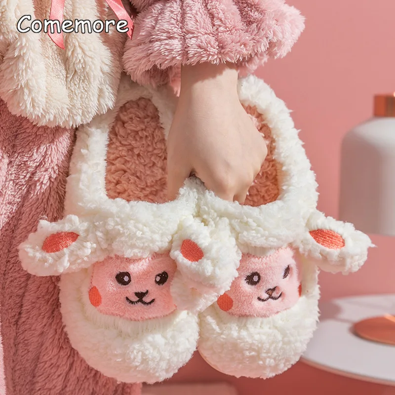 Женские домашние меховые хлопковые тапочки Comemore, новые милые плюшевые домашние тапочки для девочек, Симпатичные домашние тапочки, Осень-зима 2023