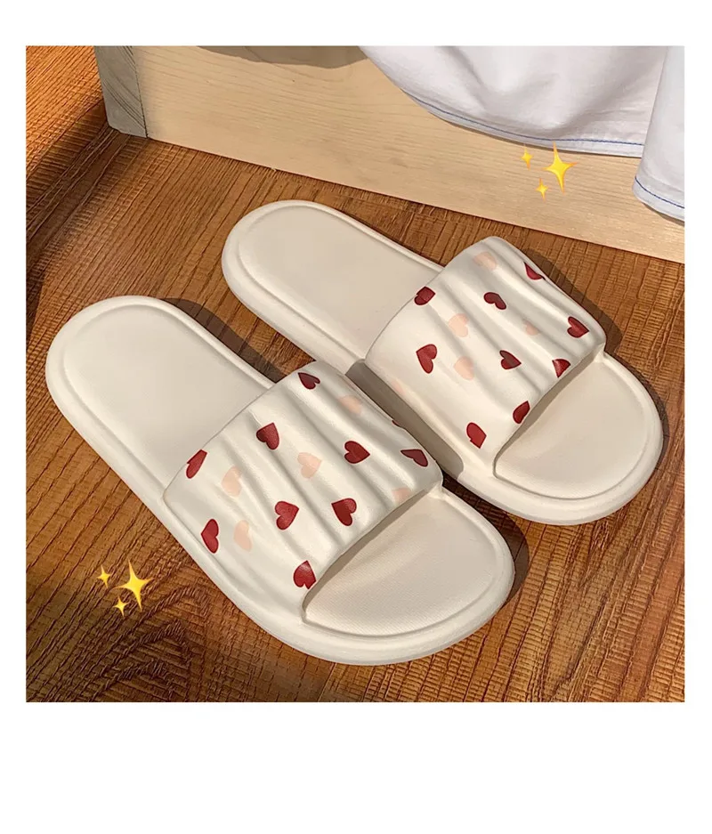 Женские домашние тапочки на плоской подошве, Мягкие Шлепанцы из ЭВА, на платформе, с милым рисунком сердца, сланцы для отдыха и пляжа, для ули...