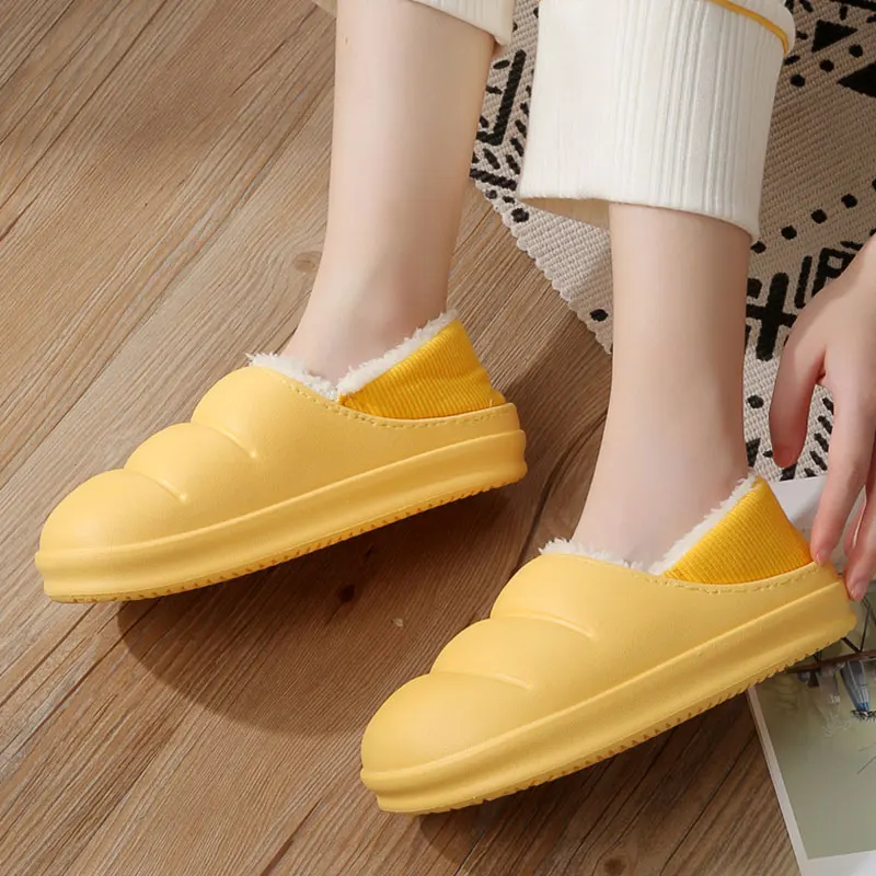 Женские домашние тапочки EVA светильник кие водонепроницаемые тапочки, уличная теплая хлопковая плюшевая мягкая обувь на платформе для зимы...