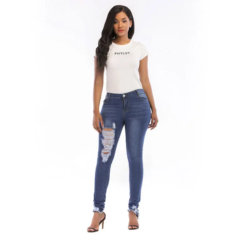 Для женщин джинсовые брюки-карандаш сексуальные с высокой талией отверстие Для женщин женский кисточкой DM001