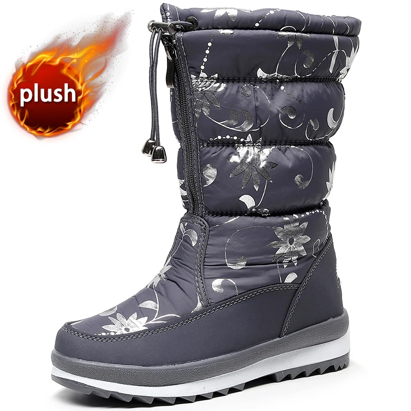 Женские зимние ботинки, Роскошные зимние ботинки, толстая плюшевая Водонепроницаемая нескользящая обувь с бантом, модная женская зимняя обувь, теплые меховые сапоги для женщин