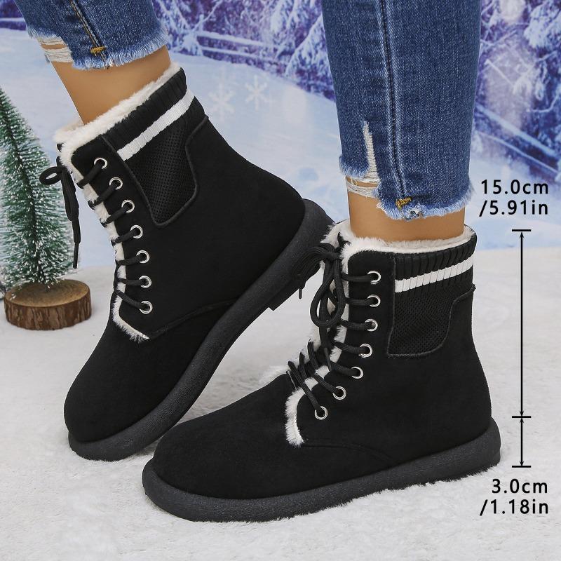 Женские зимние ботинки на толстой подошве больших размеров - Зимний новый стиль, Ретро, Короткие до щиколотки, На шнуровке, На флисовой подкладке, Толстые и теплые 43 чёрный