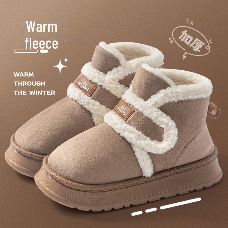Женские зимние ботинки средней высоты 2024 года: Теплая, толстая бархатная, нескользящая, морозостойкая, хлопковая обувь для улицы Size 38-39