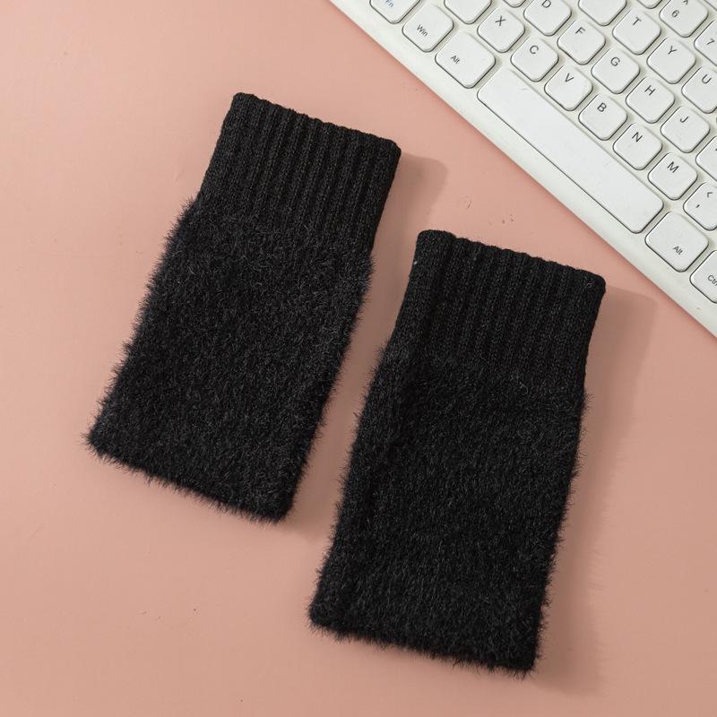Женские зимние корейские перчатки, плюшевые перчатки с открытыми пальцами, вязаные перчатки, офисные перчатки с увеличенной защитой запястья, теплые перчатки чёрный
