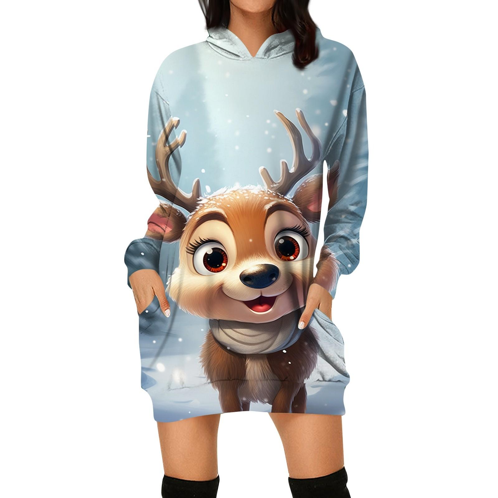 Женские зимние платья Модные женские рождественские принты Письменный принт Карманы с капюшоном Платье-толстовка XXL