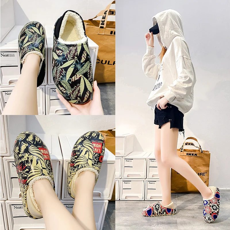 Женские зимние тапочки для пар, теплая Толстая обувь для дома, водонепроницаемая Нескользящая плюшевая хлопковая домашняя Уличная Повседн...