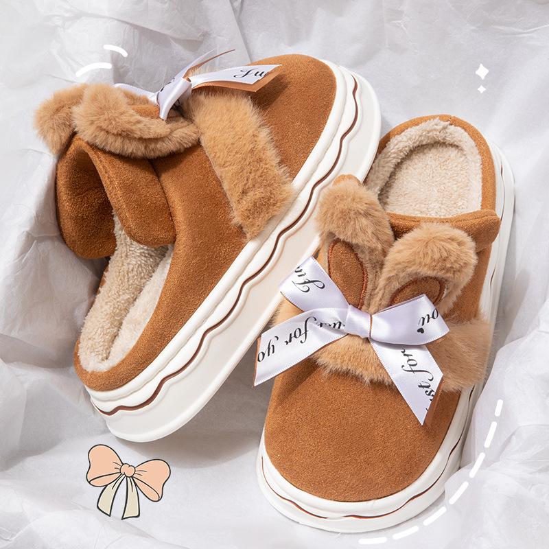 Женские зимние тапочки из хлопка с бабочкой и узлом, милые, для дома, с толстой подошвой, теплые и плюшевые, универсальные зимние тапочки 41 хаки