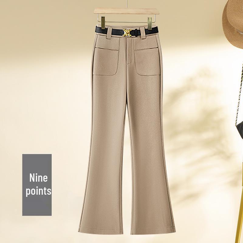 Женские клетчатые брюки широкого кроя на флисовой подкладке - Зима 2024, Шерсть с эластичной талией, Приталенный микроклеш 30 (125-135 lbs)