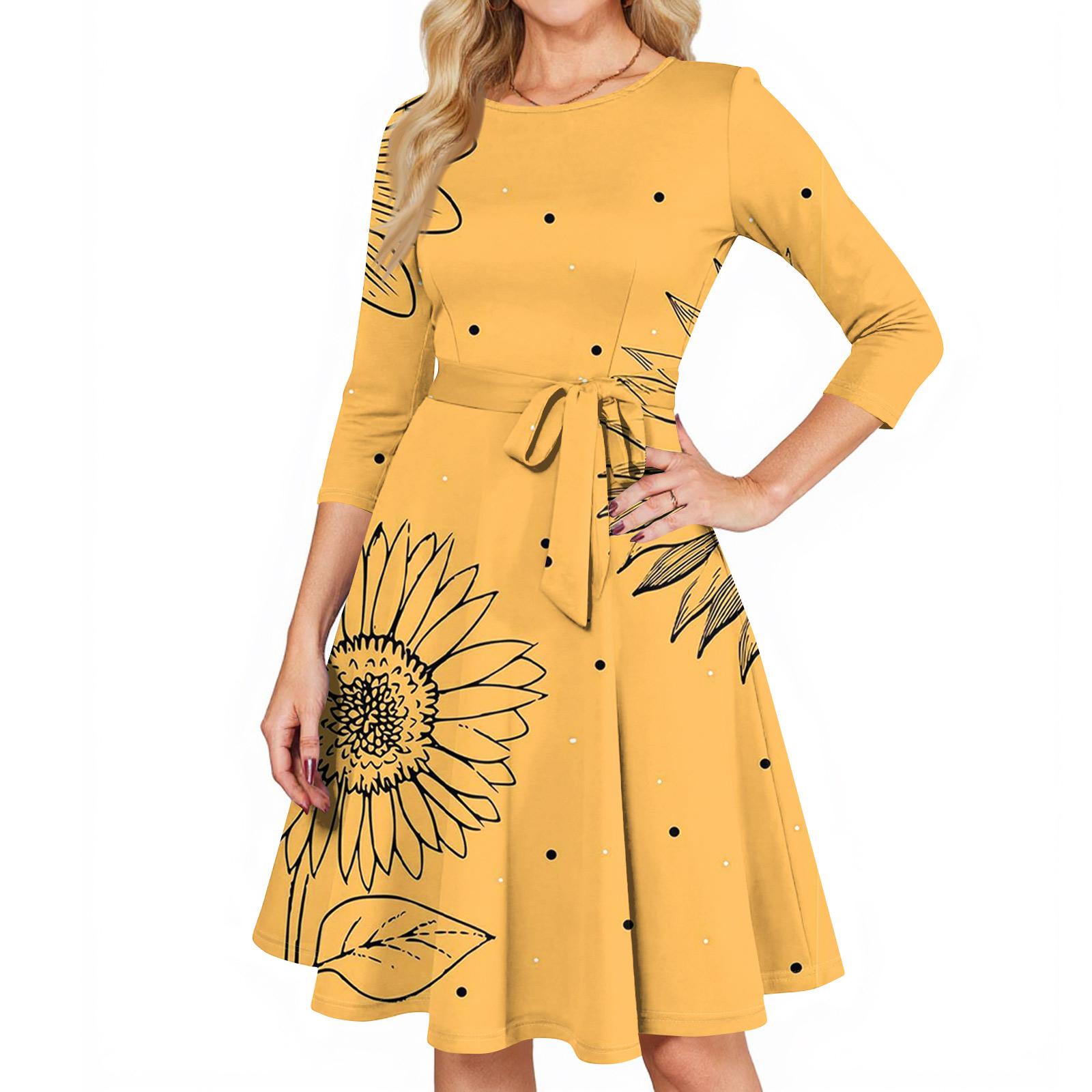 Женские коктейльные платья с рукавом 3/4, винтажное платье для гостьи на свадьбу L жёлтый