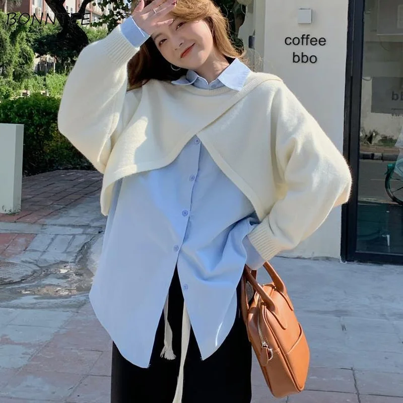 Женские комплекты, милая простая вязаная уютная модная весенняя одежда, популярная уличная одежда для колледжа в стиле Харадзюку, Новое пос...
