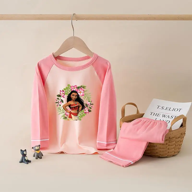 Пижамные комплекты Moana для девочек и мальчиков, хлопковые пижамы, детская одежда для сна Jammies, осенне-весенняя одежда с длинными рукавами, футболка, топы и брюки