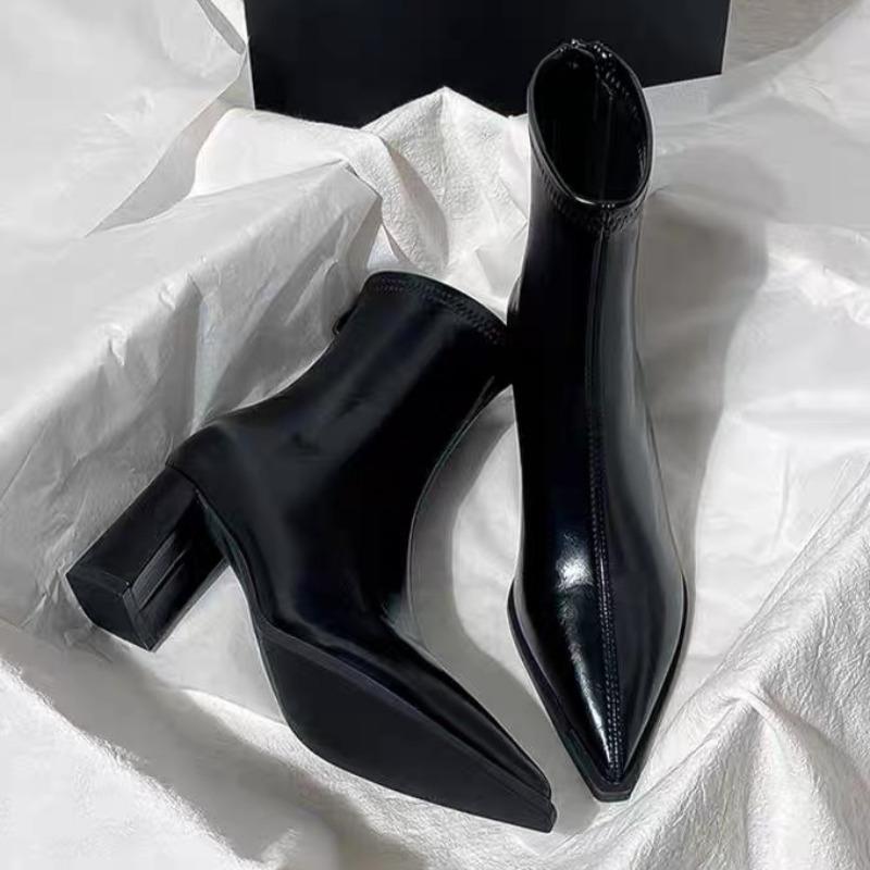 Женские короткие ботильоны на высоком каблуке с острым носком, дизайнерская кожа, элегантная обувь, зимняя новая мода, ботильоны, туфли-лодочки для платья 35