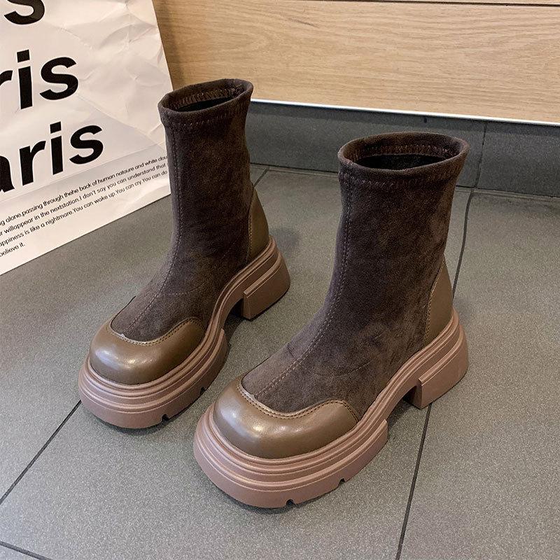 Женские короткие ботинки на платформе, новые осенне-зимние эластичные тонкие ботинки в стиле ретро, британские ботинки Мартин, челси, одинарная обувь 40