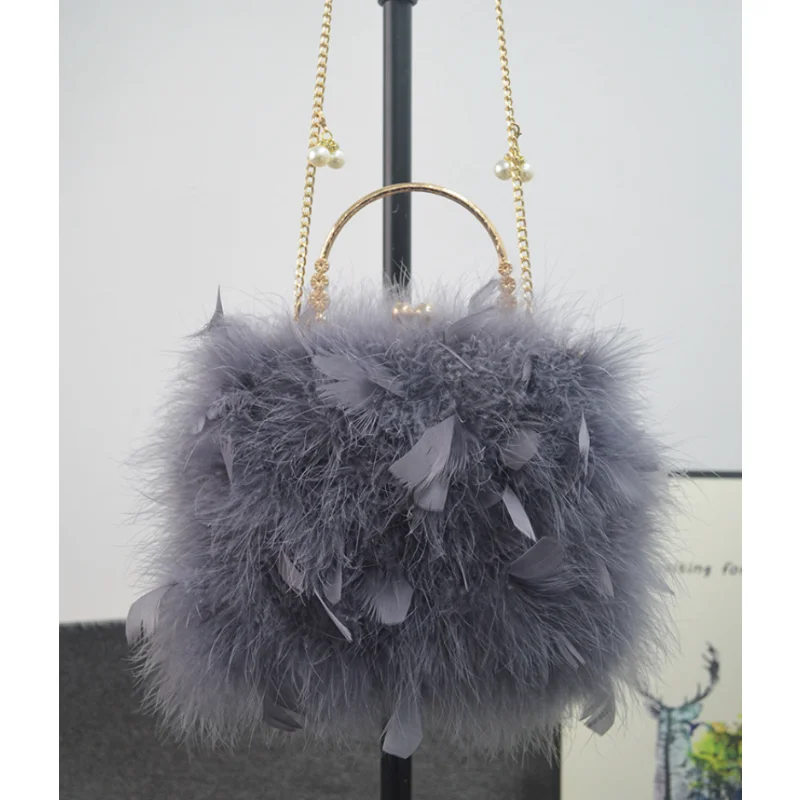 Женские кошельки и сумочки с перьями, новинка 2023, Дизайнерские клатчи, вечерние шевая вечерняя сумка, женская сумка на плечо с цепочкой, 5 цве...