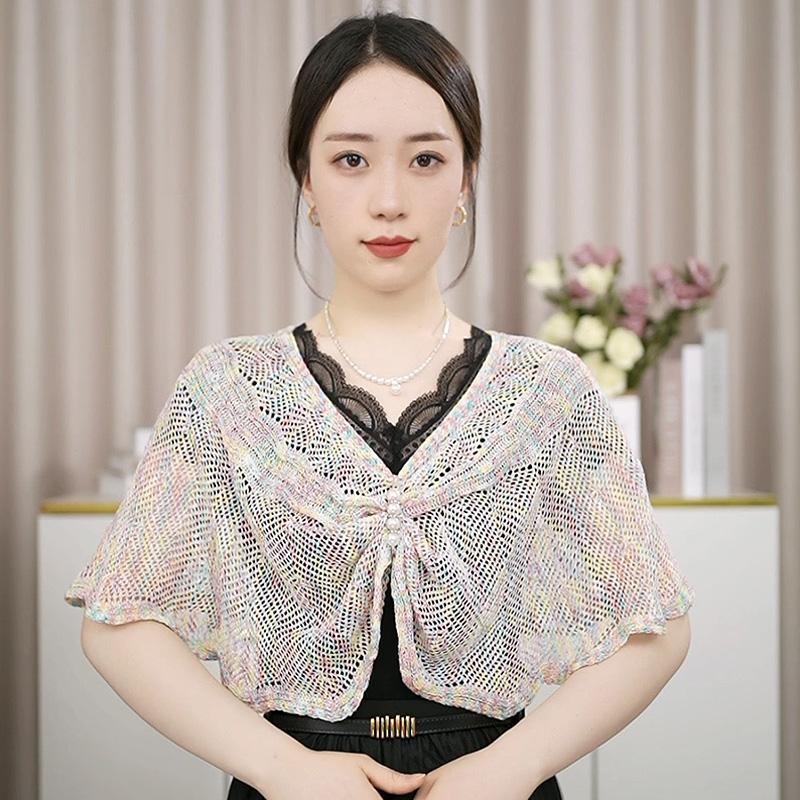 Женские красочные шарфы, вязаная шаль, пончо, жемчужные булавки, солнцезащитный крем, элегантная защита от солнца