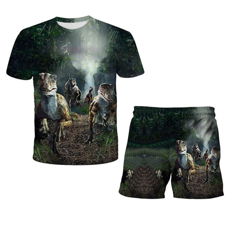 Children Kids Animals T-shirt Boys 2021 Children Print Dinosaur T Shirt Suit Girls Tops Cartoon Baby Clothes New Arrive Tee Sets