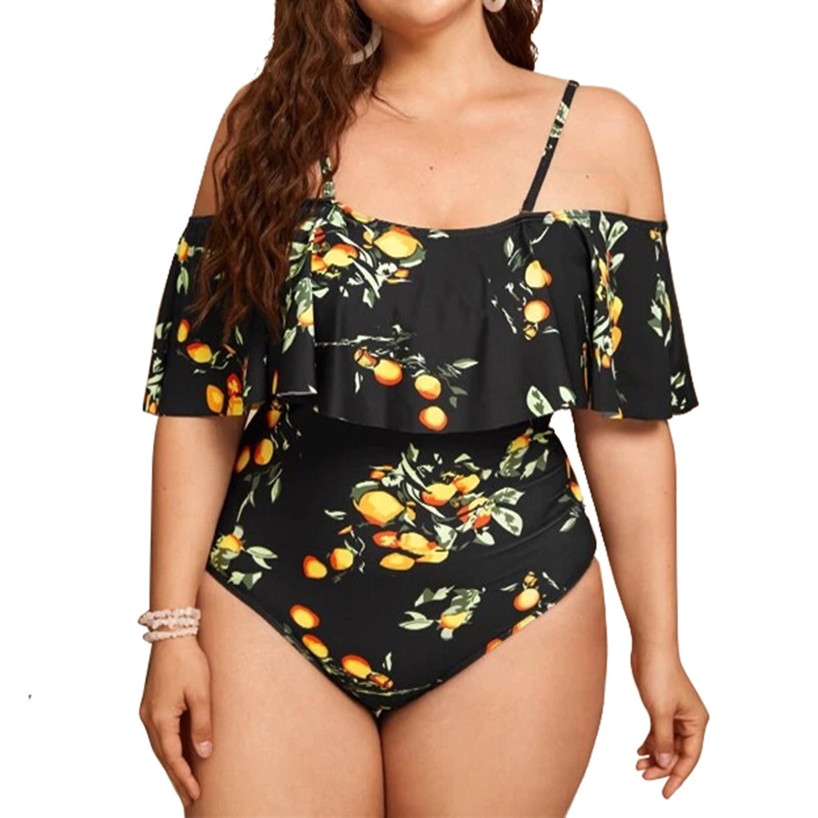 Женские купальники больших размеров с высокой талией, бикини в полоску с принтом и баской, цельный купальник XXXXL чёрный