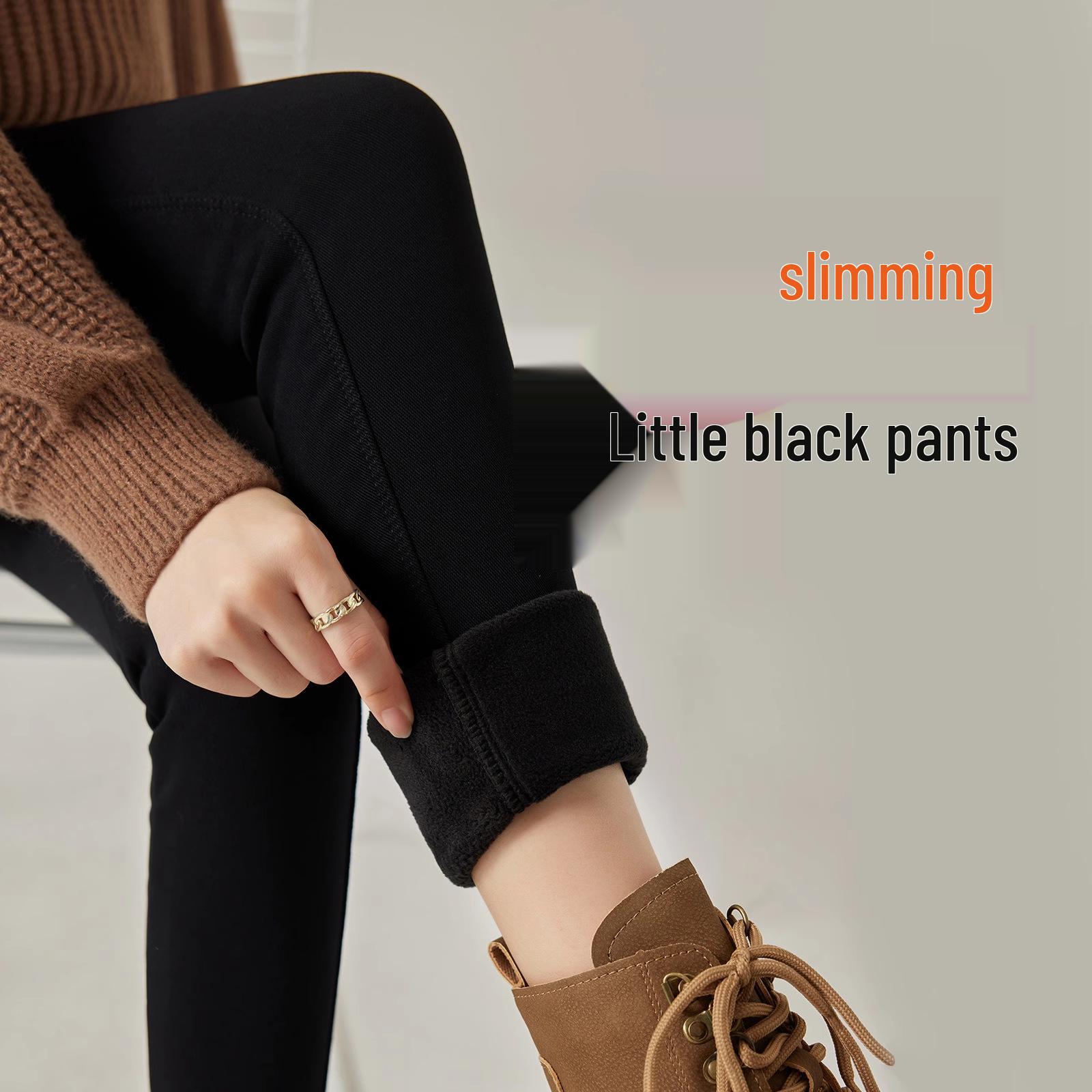 Женские леггинсы с черным флисовым подкладом: Новая осенне-зимняя коллекция 2024 года, утолщенная длина до девяти точек для тепла и комфорта S (78-95 lbs)