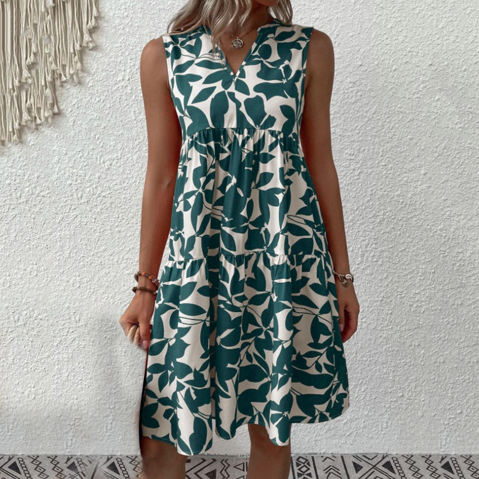 Женские летние богемные платья, сексуальное плиссированное пляжное платье с v-образным вырезом и цветочным принтом, мини-платье трапециевидной формы с рюшами и рукавами, свободный сарафан