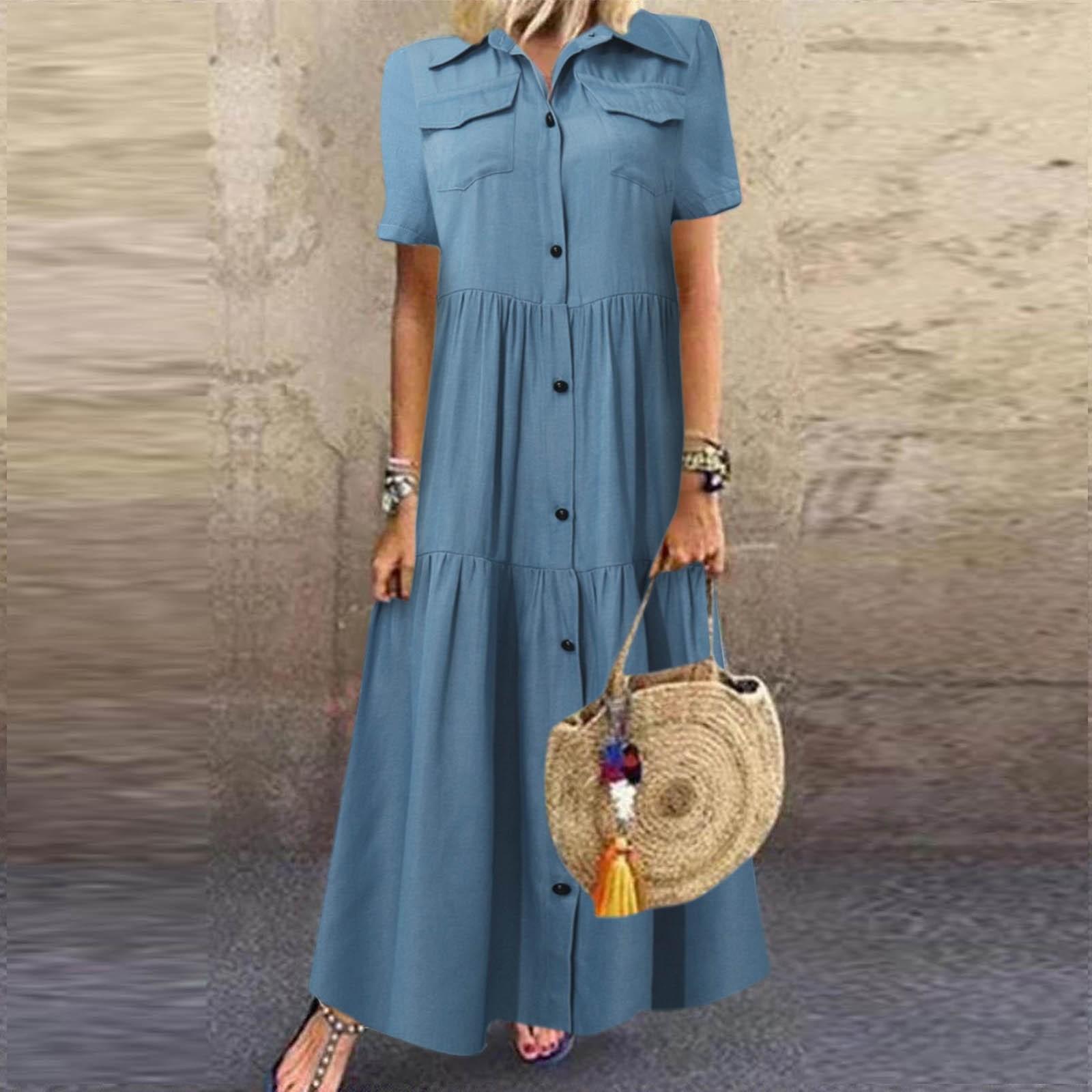 Женские летние длинные платья с вышивкой, темперамент, большая распашная юбка, тонкое джинсовое платье с имитацией джинсовой ткани XL светло-синий