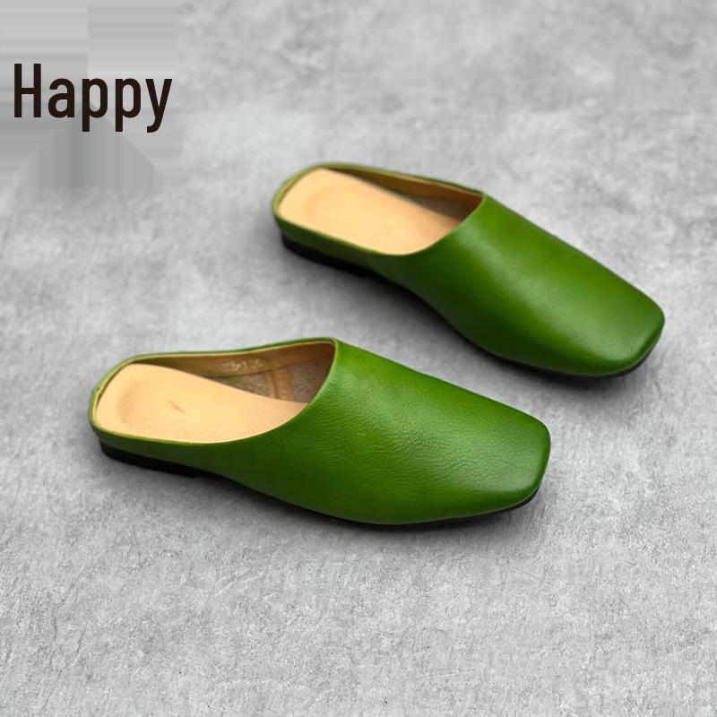 Женские летние кожаные шлепанцы с квадратным носком - Ручная работа, модные и удобные для ношения на улице. 38