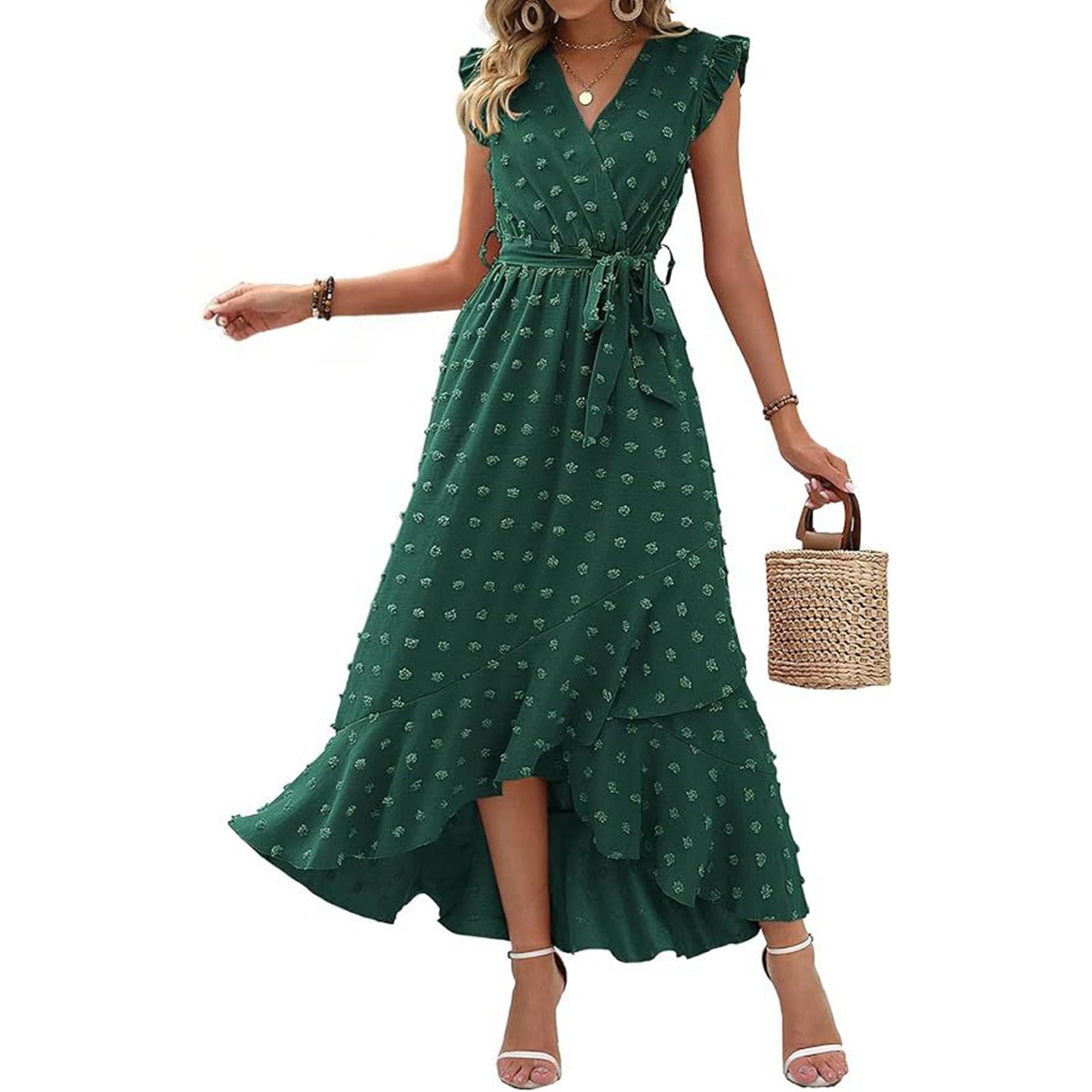 Женские летние модные платья с оборками на рукавах, однотонные, в горошек, в стиле бохо M