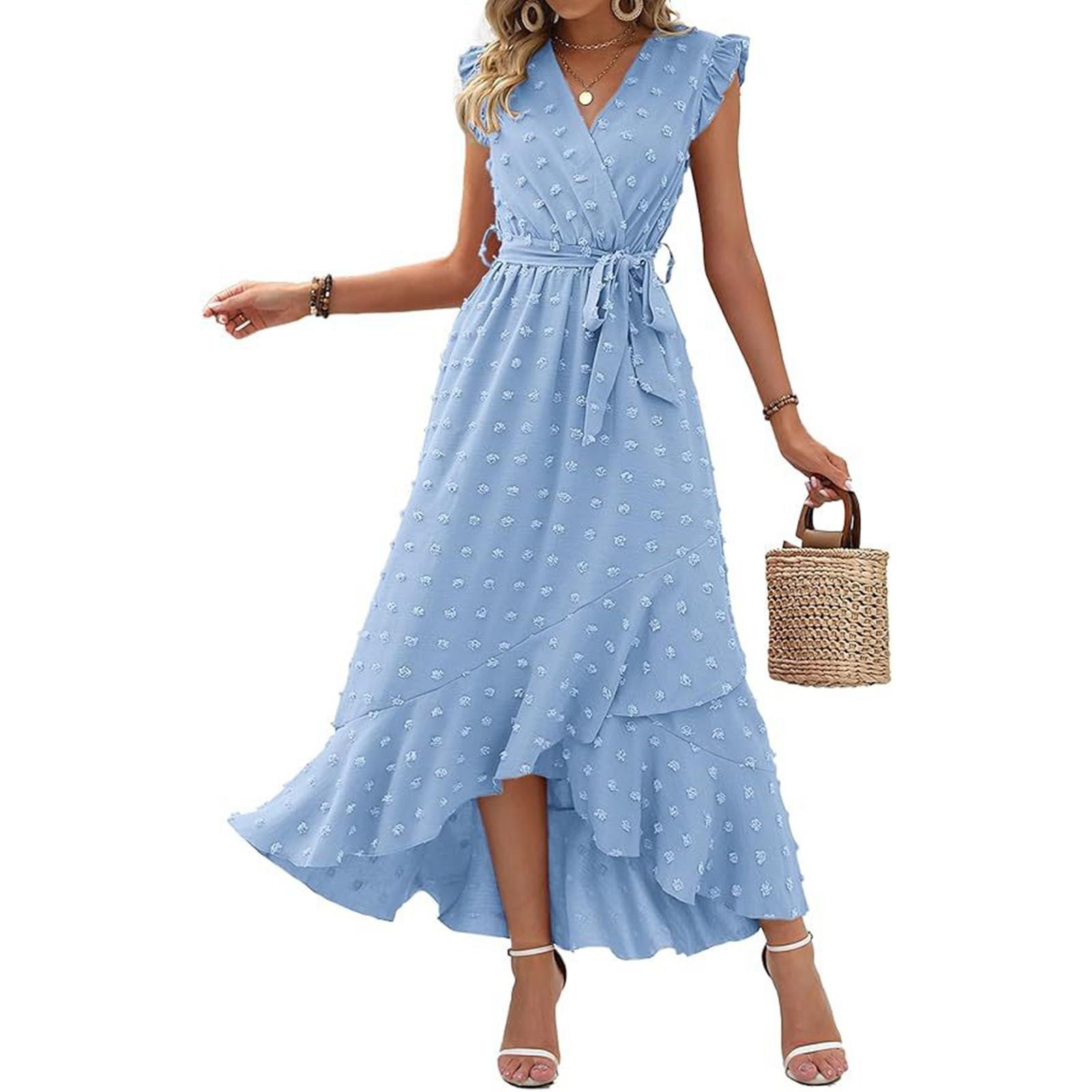 Женские летние модные платья с оборками на рукавах, однотонные, в горошек, в стиле бохо XXL