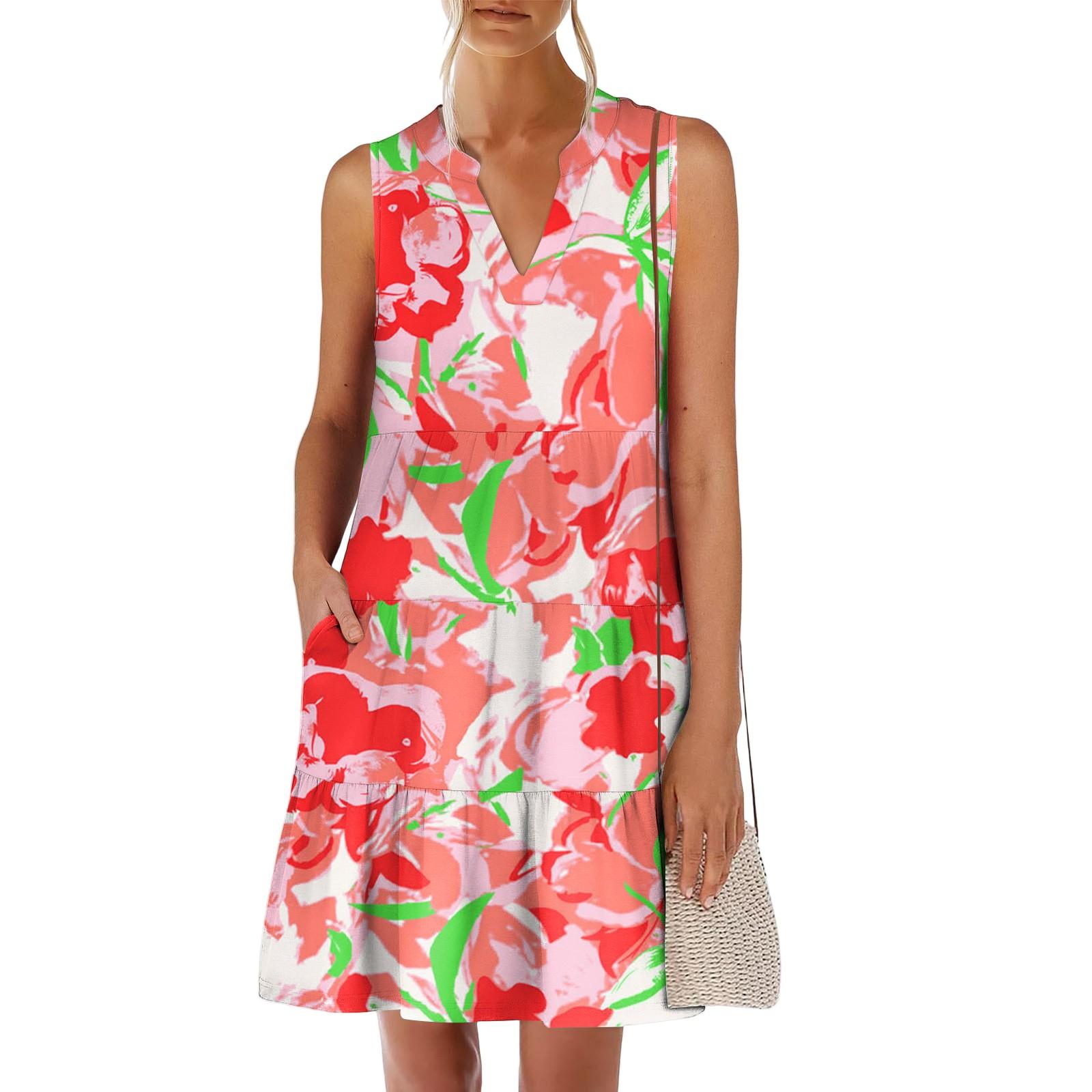 Женские летние модные повседневные платья без рукавов с V-образным вырезом и цветочным принтом в стиле пэчворк XL арбуз красный
