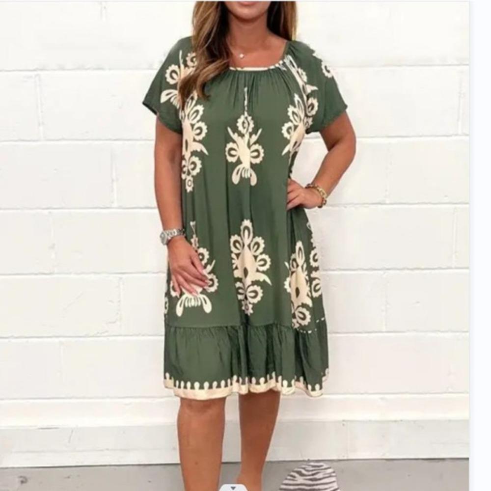 Женские летние платья-миди большого размера с круглым вырезом, свободное платье с короткими рукавами и цветочным принтом 2XL зелёный