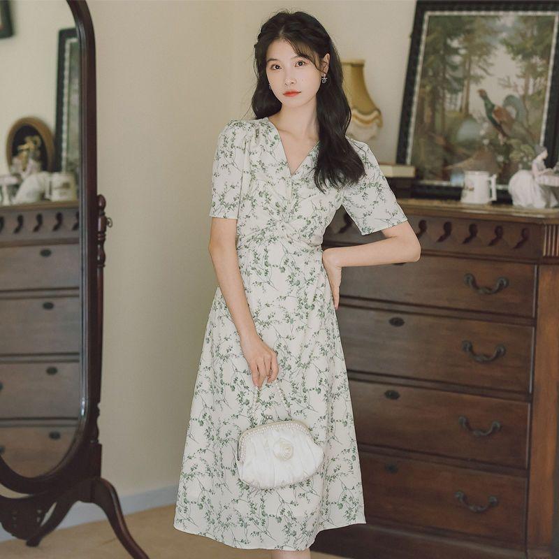 Женские летние платья. Французские платья с цветочным принтом в стиле ретро. Женская одежда. Тонкие летние нежные и элегантные длинные платья. L